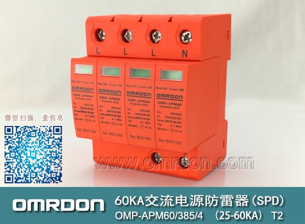 60KA二級電涌保護器SPD(又稱電源防雷器、電源避雷器、浪涌保護器、過壓保護器) OMP-APM60-